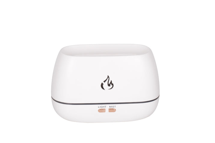 Answer 2: It uses atomization technology to disperse water vapor into the air, helping to improve air quality, prevent dryness, and create a more comfortable environment, while adding a visually appealing flame-like effect.